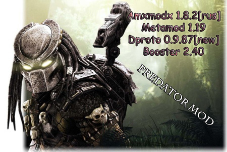 Описание материала: Amxmodx 1.8.2[rus] Metamod 1.19 Dproto 0.9.87[new] Booster 2.40 PredatorMod - Мод позволяющий игроку становиться хищником,у него 200hp и 500ap.